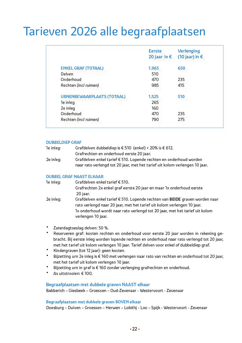 Tarieven begraafplaatsen en kerkelijke tarieven