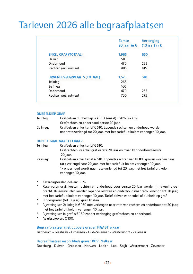 • Tarieven begraafplaatsen en kerkelijke tarieven